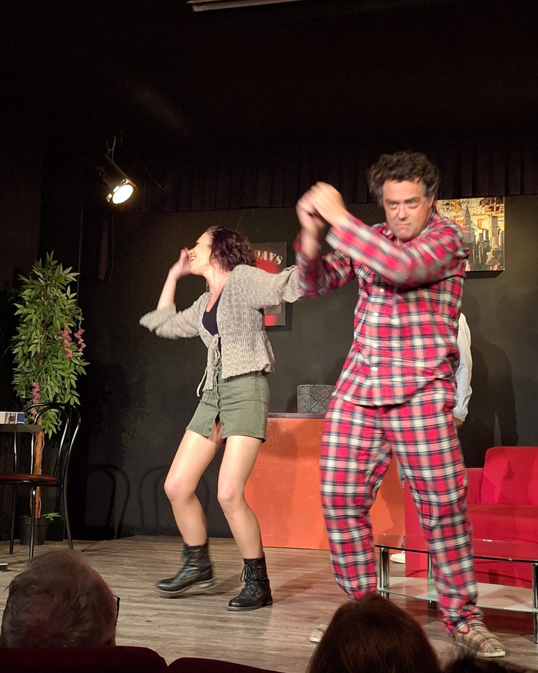 Maxime Duchateau, auteur de romans à succès et coureur de jupons invétéré, est au bout du rouleau. Son éditeur le harcèle pour avoir le manuscrit de son prochain roman, ses nombreuses conquêtes ne lui laissent pas une minute de répit et la cohabitation avec son frère Léon, passionné de puzzle mais qui ne semble pas avoir la lumière à tous les étages, commence à lui peser. Quand Vanessa, la nouvelle voisine du dessus, débarque c’est la goutte d’eau qui fait déborder le vase ! Intrusive à souhait elle va venir mettre un joyeux bordel dans sa vie ! Mais attention faux semblants et coups tordus sont au programme de cette comédie débridée où le spectateur ira de surprises en éclats de rire !