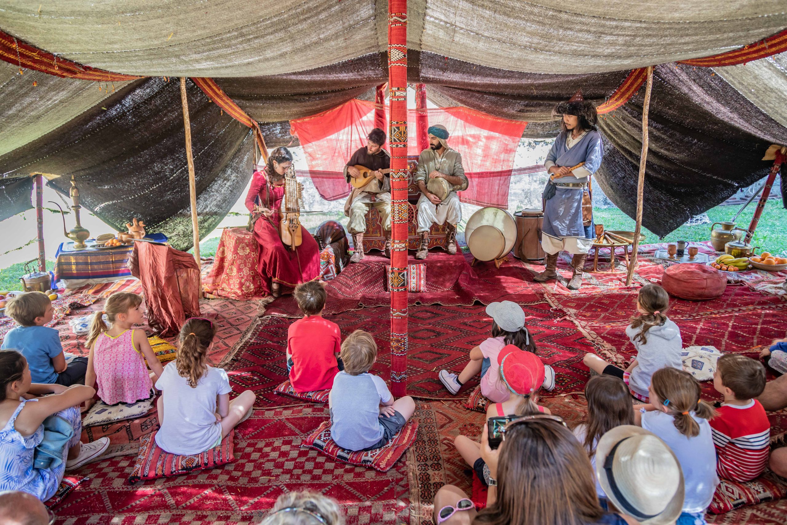 De ses milles et un voyages, Sidi Tariq a rapporté autant de contes à partager. Parti de sa Cadix natale, ses pas l’ont porté jusqu’aux confins de la Chine, à travers tout le Moyen Orient… il vous propose aujourd’hui de le suivre ! Sa caravane est un coffre aux merveilles de toutes les cultures : découvrez les arts raffinés de la musique et de la poésie orientales, des épices, soieries, mosaïques, mais aussi les arts de la guerre.