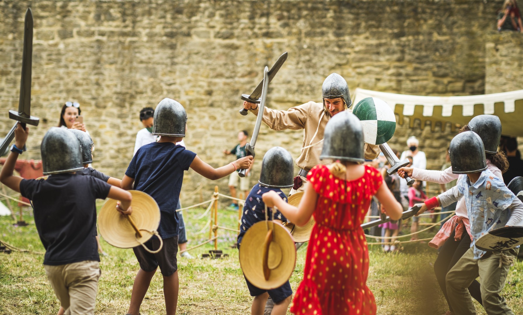Les ateliers pour enfants : escrime, arts de la table, vie du chevalier, jeux sur table et petits bâtisseurs.