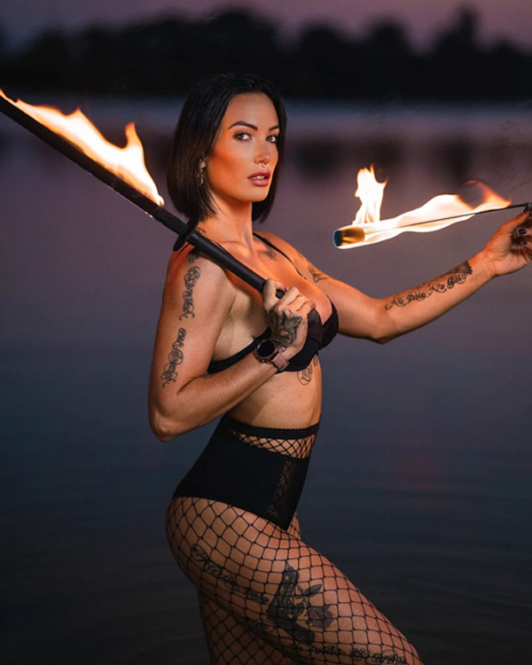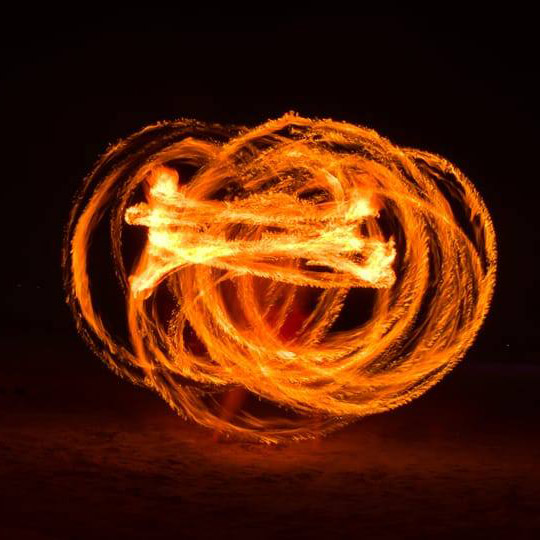 Toutefois, il choisit chaque agrès avec soin afin d’adapter le spectacle à la configuration du lieu et au public présent. Il crée ainsi un univers vivant, dynamique et spectaculaire. Les flammes se déploient, tourbillonnent et illuminent l’atmosphère, offrant un rendu hypnotisant. Les agrès deviennent une extension naturelle du performer, qui maîtrise chaque rotation et chaque étincelle pour donner vie à une performance forte et expressives. Grâce à ces outils enflammés, le spectacle prend une dimension artistique unique.
