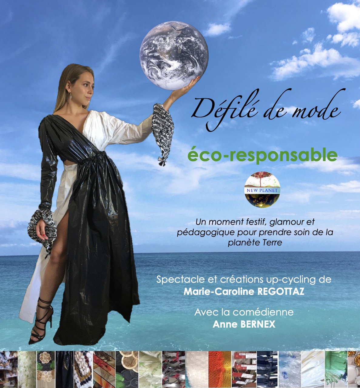 Ce défilé-spectacle original est la rencontre du glamour, de l’humour, de l’écologie et de l’éco-responsabilité. Il présente des créations entièrement réalisées par l’artiste plasticienne Marie-Caroline Regottaz, notre directrice artistique, à partir de déchets encombrants pour notre planète.