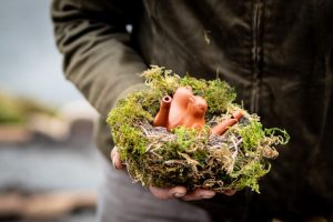 Pour créer ce paysage, Delphine Sekulak a collecté des matériaux naturels : terre, eau, mousse, écorce, souche, pierre, branche et autres végétaux… donnant aussi naissance à des espèces végétales imaginaires.
