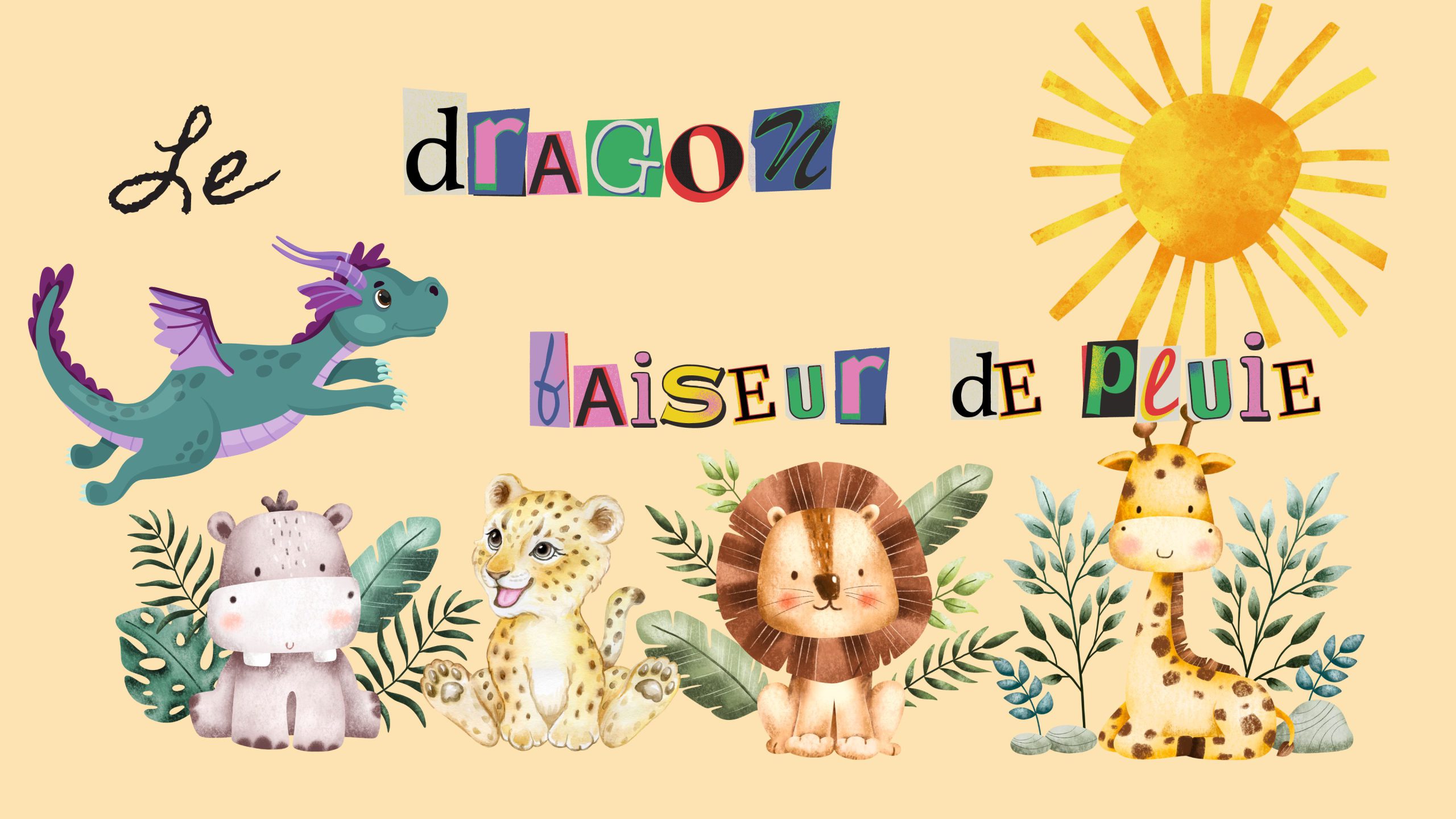L’histoire se situe en Afrique, il y fait chaud, le climat est sec et aride. Sans eau, la sècheresse est d’autant plus dévastatrice. Les enfants revoient également les animaux emblématiques de l’Afrique : lion, girafe, hippopotame et léopard.