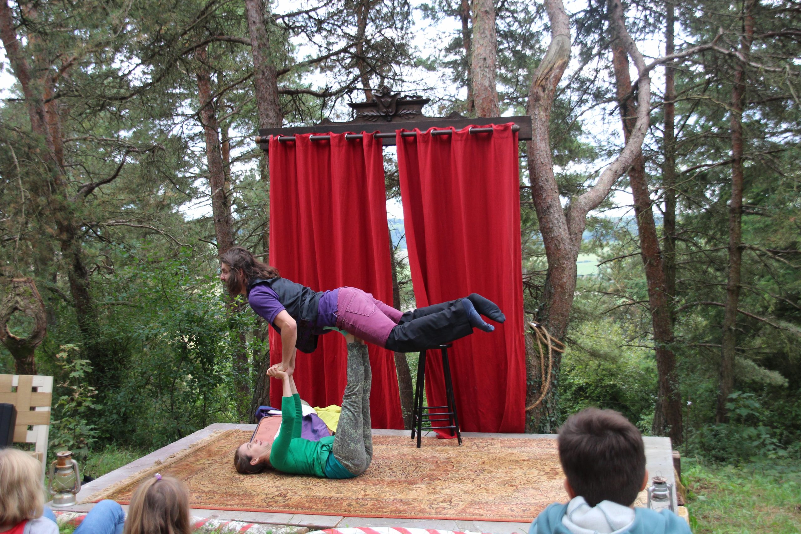 Pascal et Pascale sont deux magiciens qui, malgré leur niveau douteux en prestidigitation, vont essayer de vous transporter dans un monde merveilleux. Non pas par leurs tours de passe-passe ratés, mais par la magie des mots. Pascal et Pascale vous délivreront deux contes illustrés accompagnés d’enchaînements acrobatiques et d’interactions avec le public.