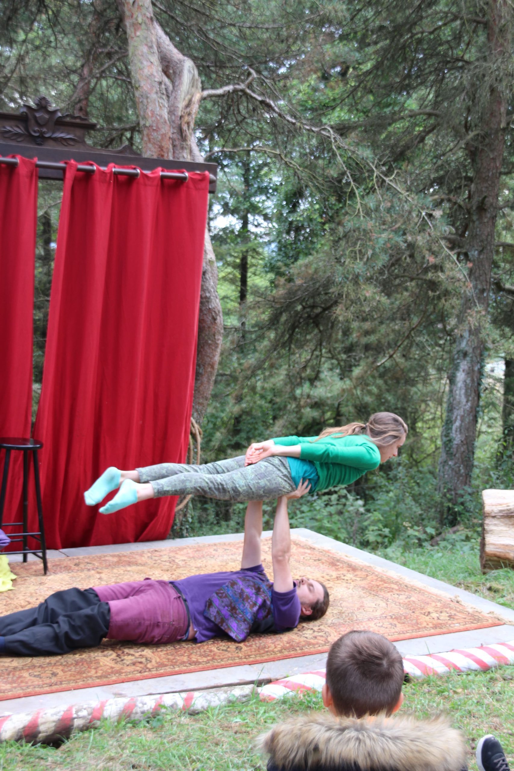 Nous pouvons proposer, avec le spectacle, un atelier acro-porté parents-enfants. Pendant 1h30, Léni Gueusquin et Loélia Mengin vous apprendront les bases de l’acro-porté dans une ambiance ludique, incluant tous les âges et les niveaux.