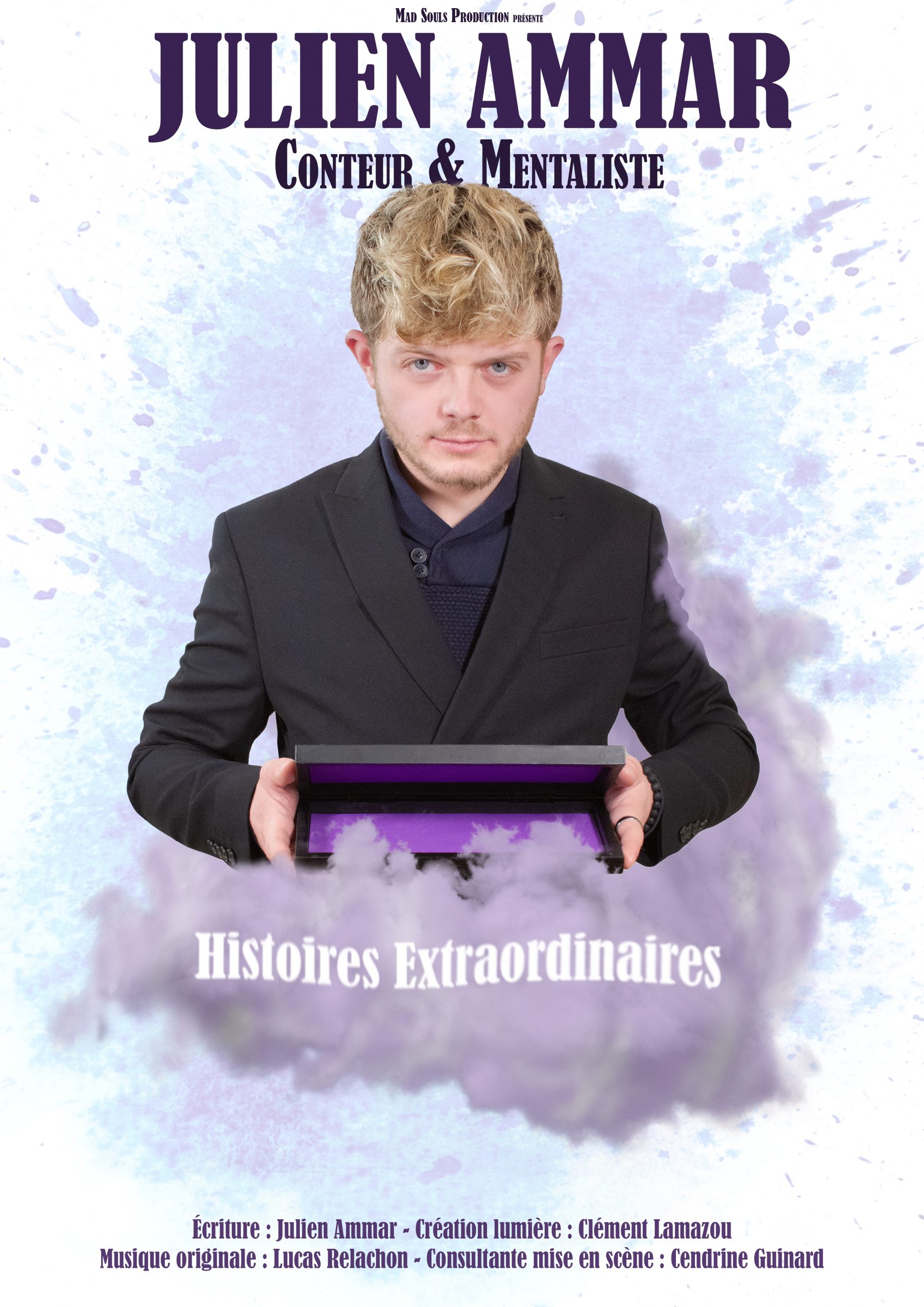 Le Mentaliste Julien AMMAR vous invite dans son univers étonnant et poétique, à travers ses personnages, entrez dans ses histoires extraordinaires.